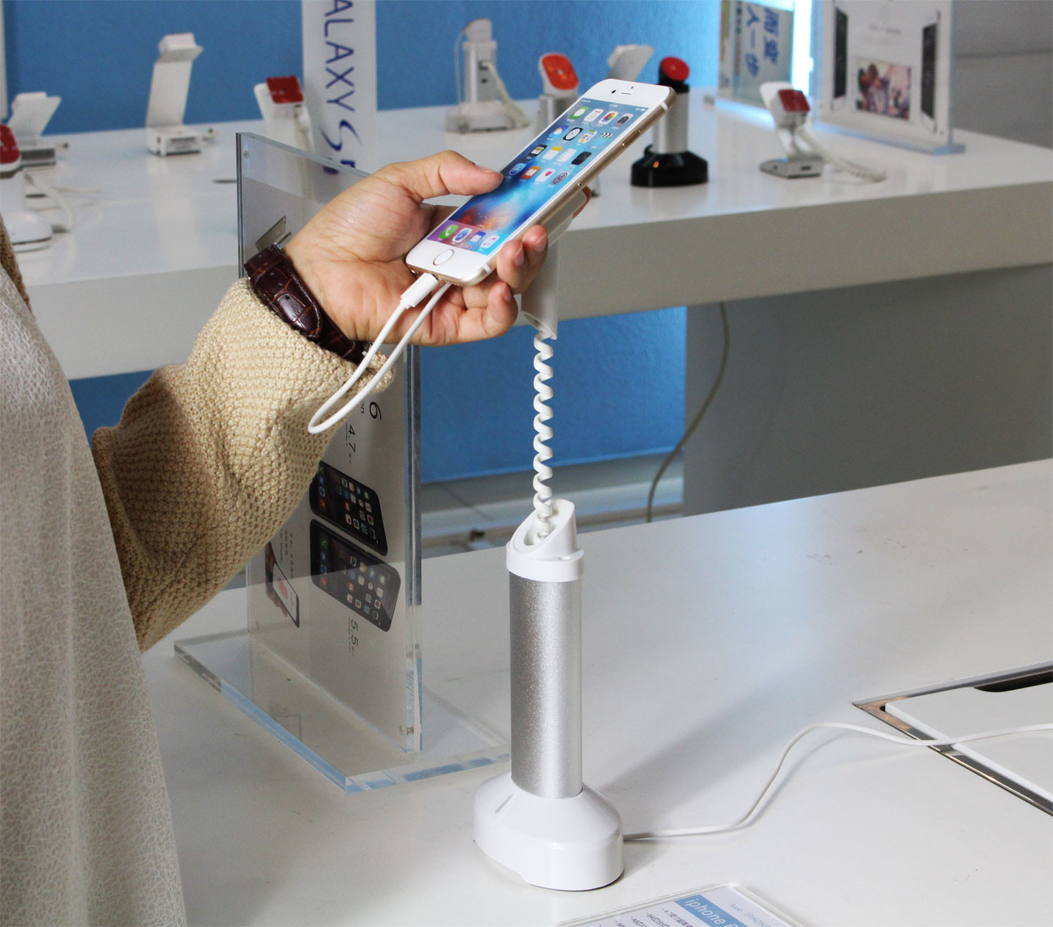 cell phone display holder, mobile phone mounting stands , security tablet display mount devices, security laptop cable lock, security alarm system. Mobile Phone Security Stands, Alarm System, tablet cable lock, smart watch security, Camera Display Holder, security mobile display, pad display holder, camera security stands, tablet holder, tablet alarm stands, display racks, SECURITY MOBILE PHONE, SECURITY CAMERA, SECURITY TABLET PC, ALARM SYSTEM, display system, phone mount, cellphone bracket, smart phone holder, security systems for mobile phone, laptop computer security cable locks, anti theft devices, retail secure display, security control for mobile phone with 4 ports, 6 ports and 8 ports, security hook display locks